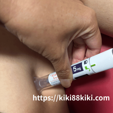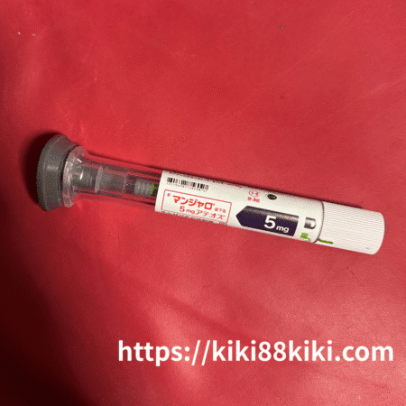 今週は左太ももにマンジャロ(GIP/GLP-1 受容体作動薬)自己注射をしました。