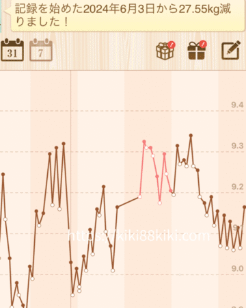 シンプルダイエットというアプリで体重を記録していて、1年半近くになってようやく生理日の期間のグラフの色を変えることができることを気づいた。