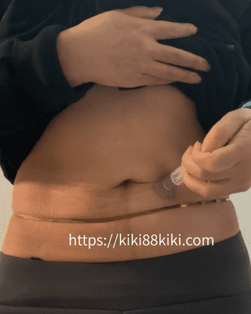 今回は、ヘソ左にGIP/GLP-1受容体作動薬「マンジャロ®皮下注」自己注射しました。
