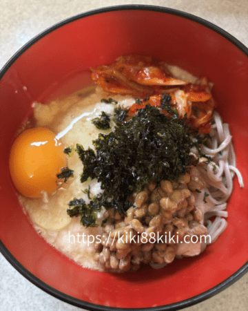 山芋を入れたりキムチを入れたりもりもりで食べています。