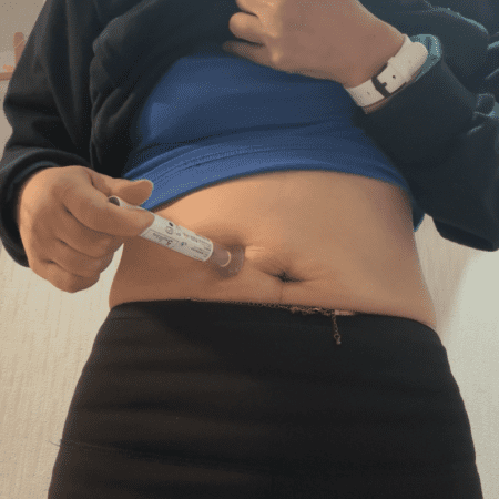今回のGIP/GLP-1受容体作動薬「マンジャロ®皮下注」はへそ右に自己注射しました。